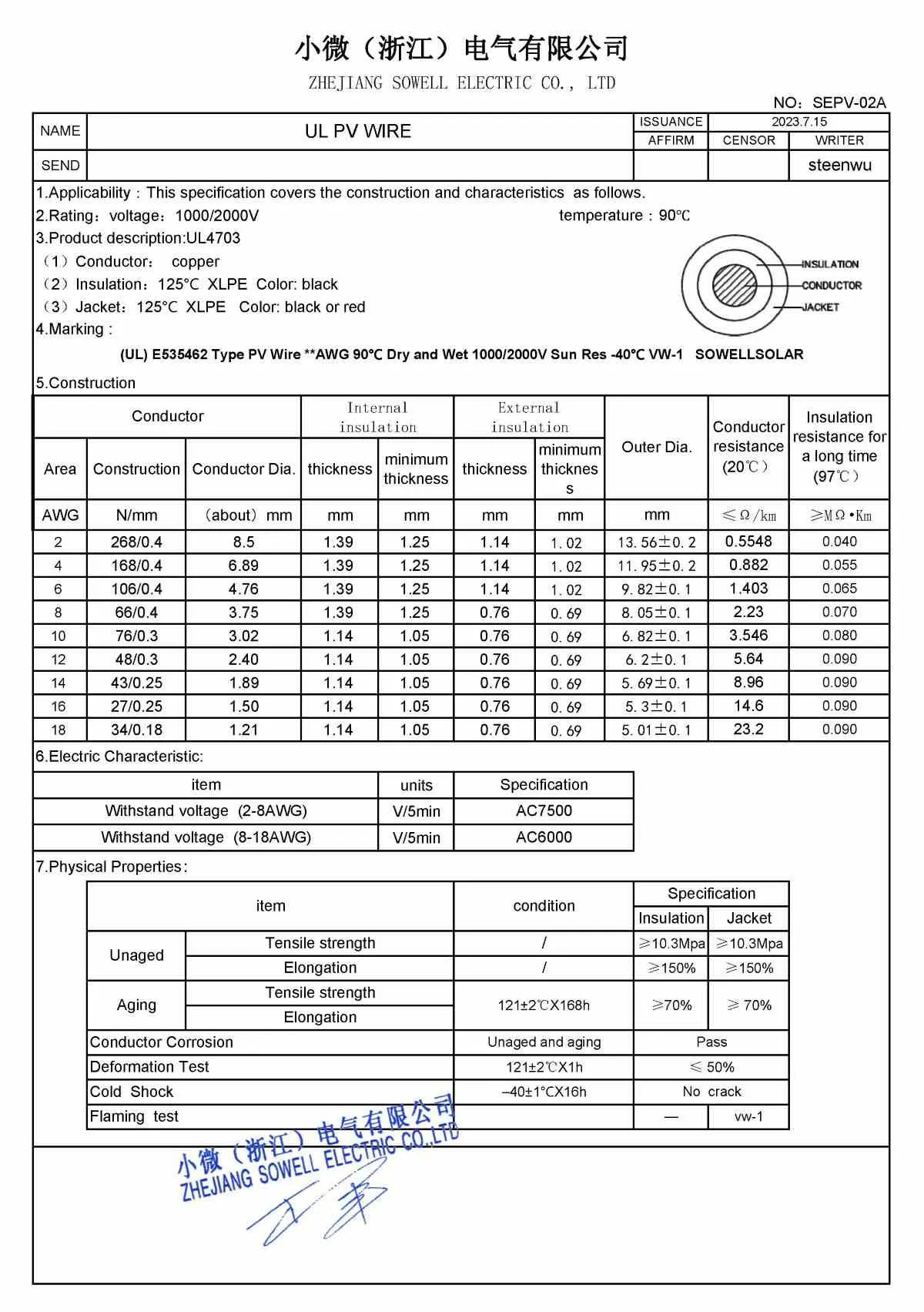 SOWELLSOLAR একজন অভিজ্ঞ প্রস্তুতকারক এবং সরবরাহকারী। তাদের সোলার ফটোভোলটাইক ওয়্যার UL 4703 কঠোর বহিরঙ্গন পরিবেশের জন্য ডিজাইন করা হয়েছে এবং আপনার বিবেচনার জন্য উপলব্ধ! মডেল: UL4703 PV তার ফাইল নং E535462 প্রস্তুতকারক: Zhejiang Sowell Electric CO Ltd ব্র্যান্ড: SOWELLSOLAR MOQ: আলোচনা সাপেক্ষ লোডিং পোর্ট: নিংবো / সাংহাই অর্থপ্রদানের শর্তাবলী: TT/LC/DP/DA/Paypal/Visa